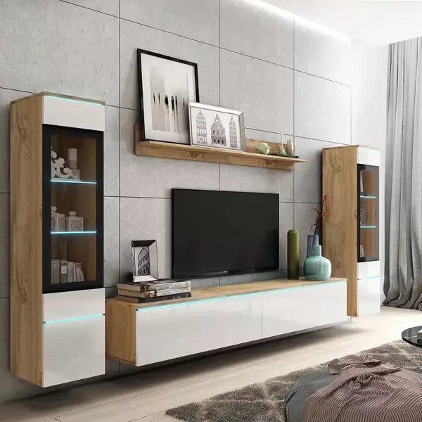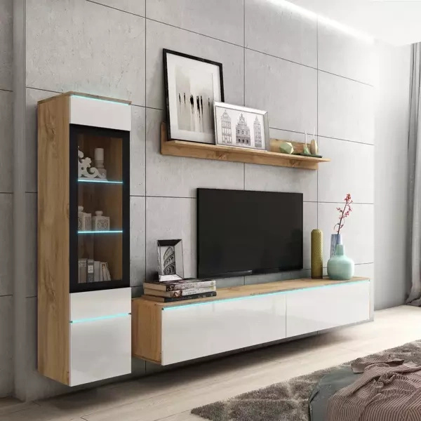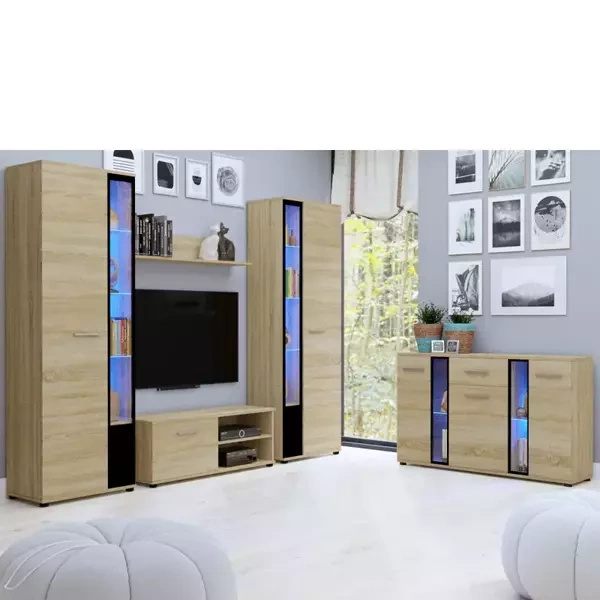 Meble do salonu SAMBA są wykonywane z najwyższej jakości materiałów, charakteryzujących się dużą odpornością na uszkodzenia mechaniczne. Zestaw utrzymany jest w nowoczesnej stylistyce i z pewnością przypadnie do gustu miłośnikom funkcjonalnej i prostej formy. Zestaw składa się z dwóch pojemnych witryn, które w środku mają 3 półki z płyty. Dwudrzwiowej szafki RTV z półeczką pośrodku oraz półki wiszącej, która pozwoli na zgromadzenie i zaprezentowanie kolekcji książek, zdjęć lub rodzinnych pamiątek Meblościanki dostępne są w kilku modnych wersjach kolorystycznych, więc będą pasować do każdego wnętrza.