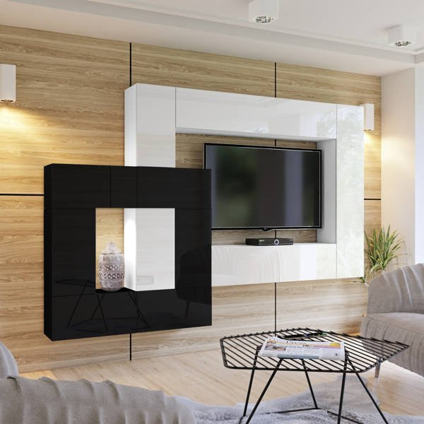 Zestaw nowoczesnych mebli systemowych JOHNY 1, składający się z sześciu elementów o wymiarach;