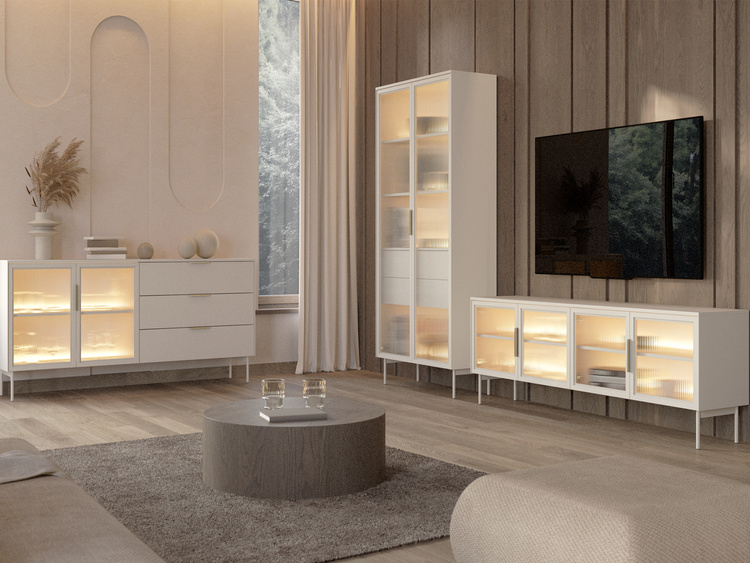 Minimalizm to pierwsze co przychodzi na myśl o nowoczesnych meblach do salonu. Kolekcja JOHNY to połączenie funkcjonalności i eleganckiej formy z prostotą, więc swoje miejsce powinna odnaleźć we wnętrzu tropiciela trendów. W kolekcji tych ponadczasowych mebli systemowych znajdują się bryły, które pomogą Ci uporządkować wszystkie potrzebne przedmioty; duża szafa, witryny szklane, barki, szafki RTV, półki wiszące oraz stoliki kawowe. Elementy wykonywane są z wysokiej jakości płyty laminowanej, której odcień wprowadzi do wnętrza salonu ciepły i nastrojowy klimat.
