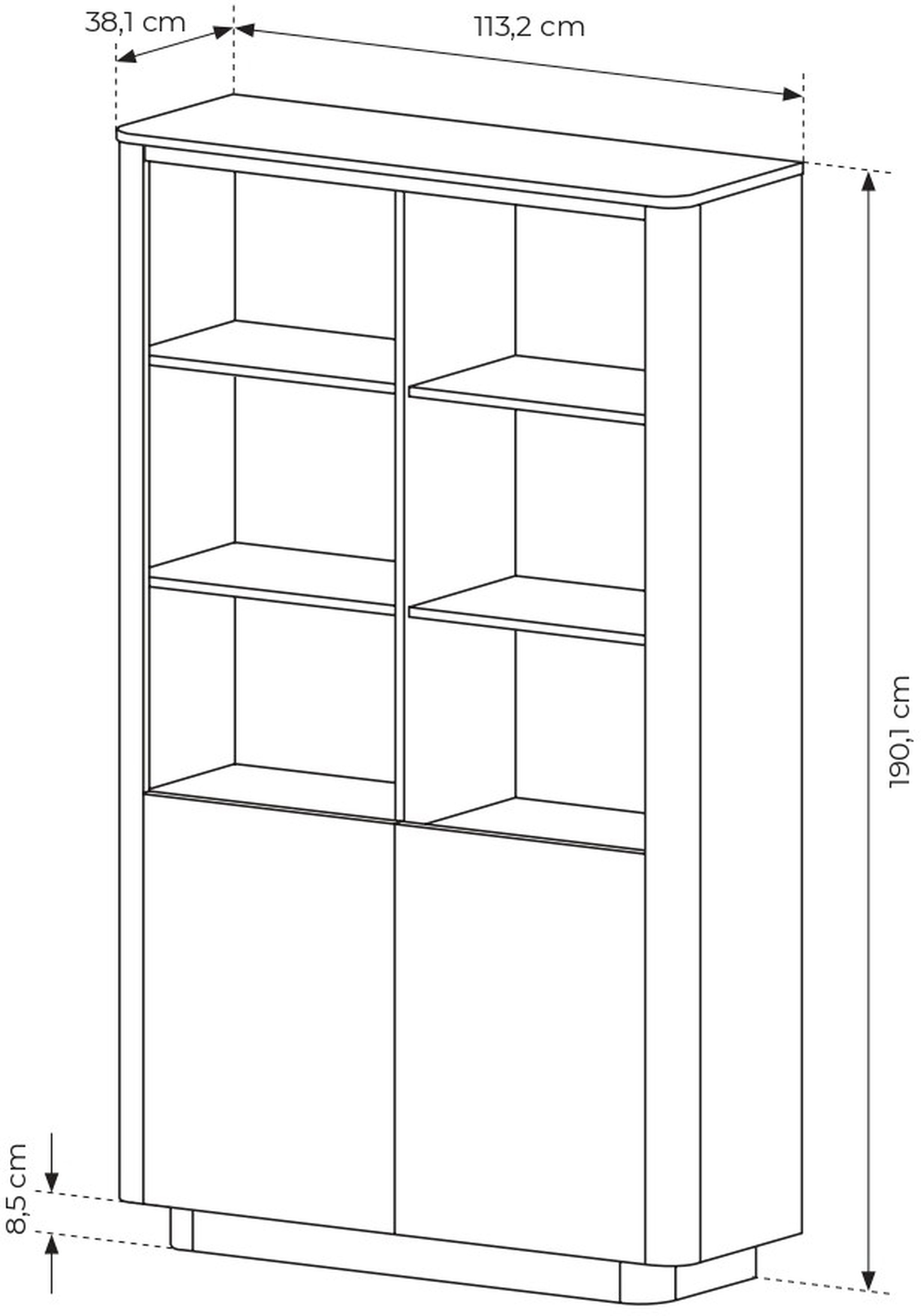 Ten regał zamykany to nie tylko praktyczne rozwiązanie do przechowywania – to także element dekoracyjny wnętrza. Otwarta część pozwala na efektowne wyeksponowanie ulubionych książek czy dodatków, podczas gdy dolna część z drzwiami ukryje mniej reprezentacyjne przedmioty. Zaoblone listwy MDF na bokach dodają meblowi elegancji i miękkości formy.
