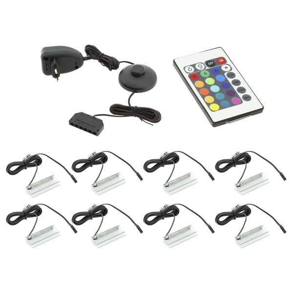 Oświetlenie półek szklanych LED 4 klipsy RGB 230v