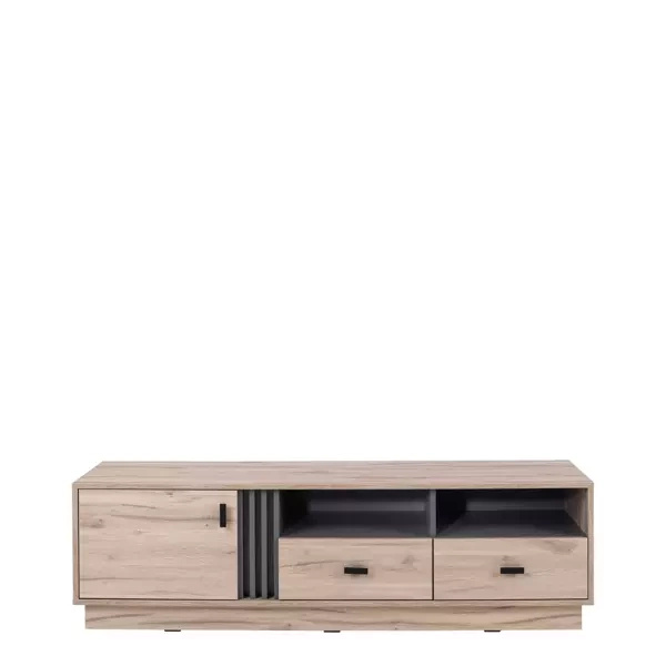 Szafka RTV SENZO to doskonały wybór do salonu, pokoju dziennego czy sypialni. Dzięki prostemu, ale efektownemu designowi, pasuje do różnych stylów wnętrz, od nowoczesnego po skandynawski. Zorganizujesz w niej wszystkie urządzenia multimedialne, a jej ciepły, naturalny kolor wprowadzi do pomieszczenia atmosferę spokoju.