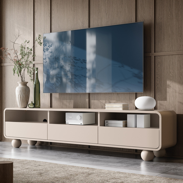 Dzięki wytrzymałym materiałom i starannemu wykonaniu, szafka RTV SENZO jest meblem, który posłuży przez wiele lat. Idealna do przechowywania sprzętu RTV i innych niezbędnych akcesoriów, zachowując porządek i elegancję.