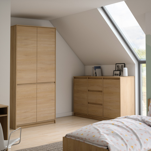 - płyta dwukolorowa, co oznacza, że bryły z zewnątrz są w kolorze dąb lefkas jasny, a wnętrza w kolorze czarnym,