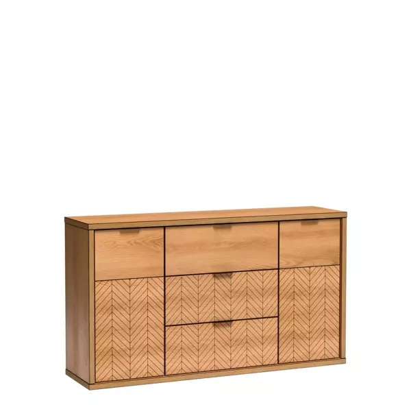 - Komoda została wykonana z solidnej płyty laminowanej o grubości 15 mm odpornej na uszkodzenia mechaniczne.