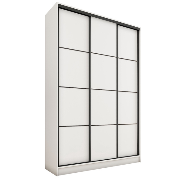 - Szafa po rozpakowaniu posiada gładki front. W zestawie dołączamy listwy widoczne na wizualizacji, które należy przykleić samodzielnie wraz z dołączonym szablonem. W przypadku rezygnacji z przyklejenia listw fronty pozostaną gładkie.