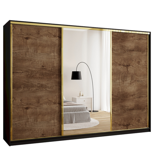 Opinie o Pojemna szafa przesuwna 280 cm do sypialni GOLD NEW dąb lefkas