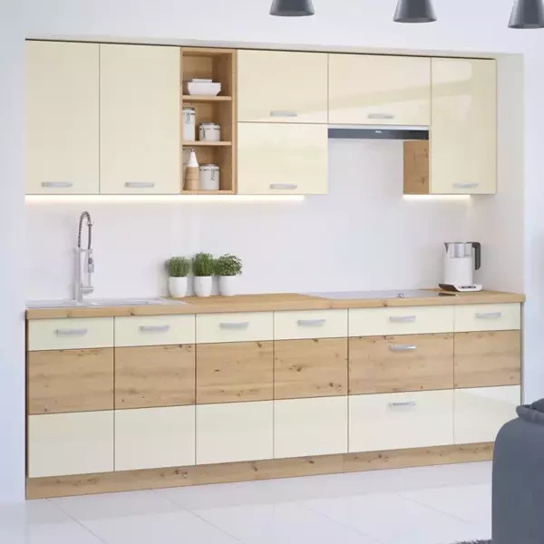 - Obrzeża zostały estetycznie wykończone okleiną ABS. Okleina zastosowana na obrzeżach zabezpiecza szafę przed uszkodzeniami spowodowanymi obtarciami.