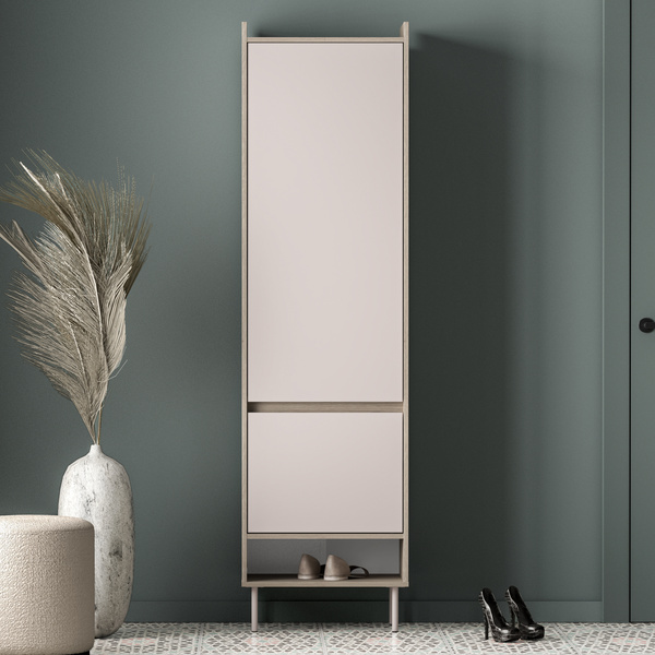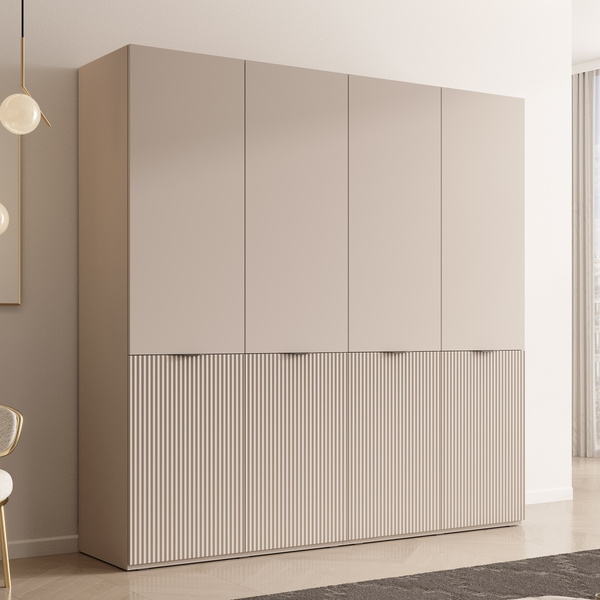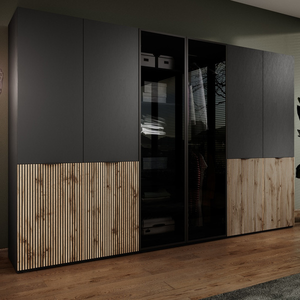 Szafa przepięknie się prezentuje, wszystko dopasowane, duże pojemne półki, jak i szuflady, miejsca na ubrania wiszące sporo, jestem bardzo zadowolony. Do zestawu zamówiłem również komodę, tam też sporo miejsca i wszystko idealnie spasowane. Polecam