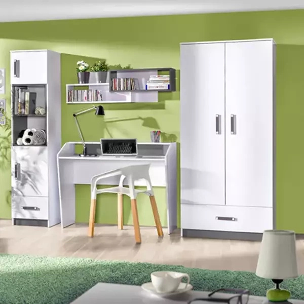 Szafa przepięknie się prezentuje, wszystko dopasowane, duże pojemne półki, jak i szuflady, miejsca na ubrania wiszące sporo, jestem bardzo zadowolony. Do zestawu zamówiłem również komodę, tam też sporo miejsca i wszystko idealnie spasowane. Polecam