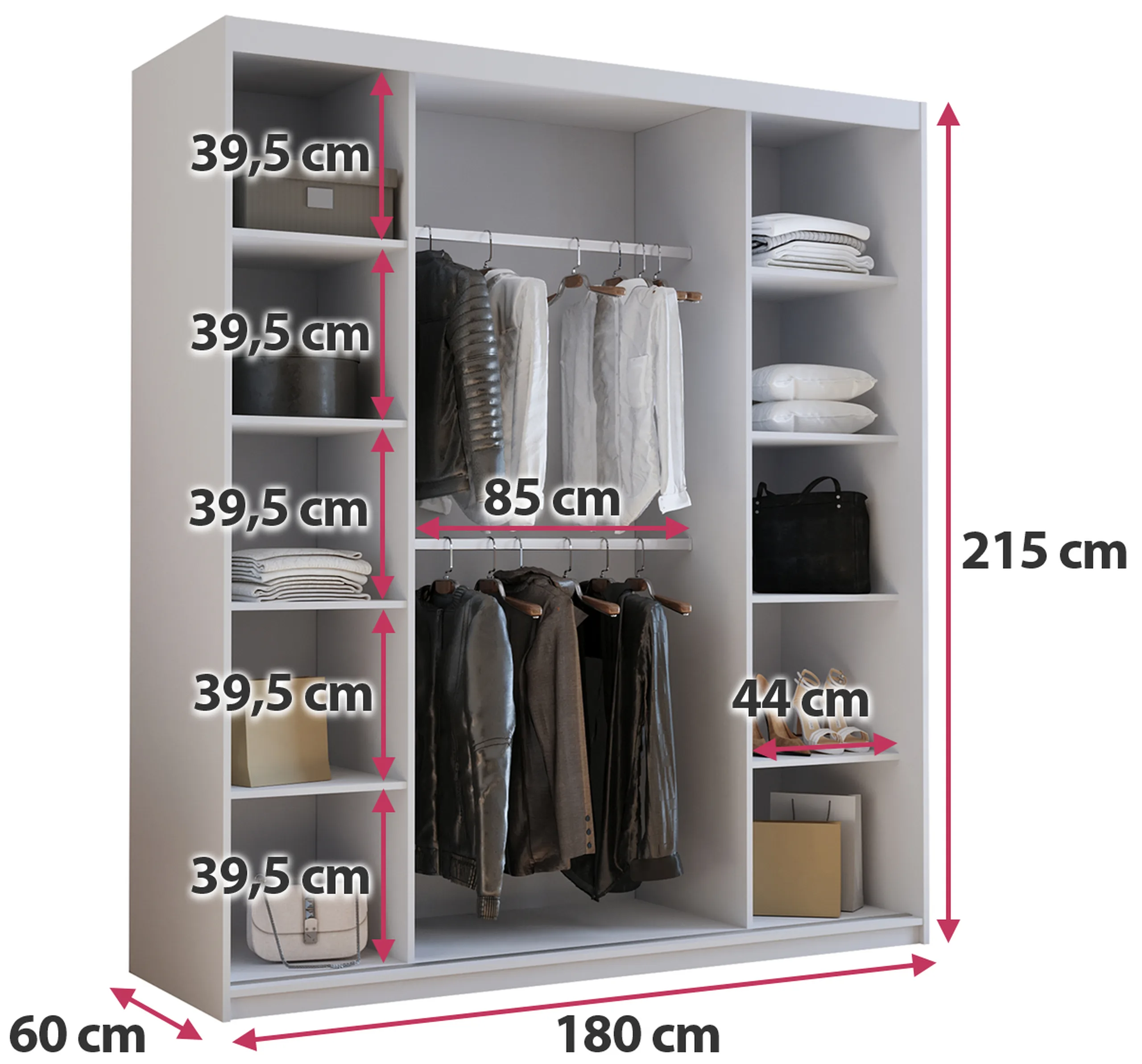 Wymiary: szerokość 180 cm, wysokość 215 cm, głębokość 60 cm
