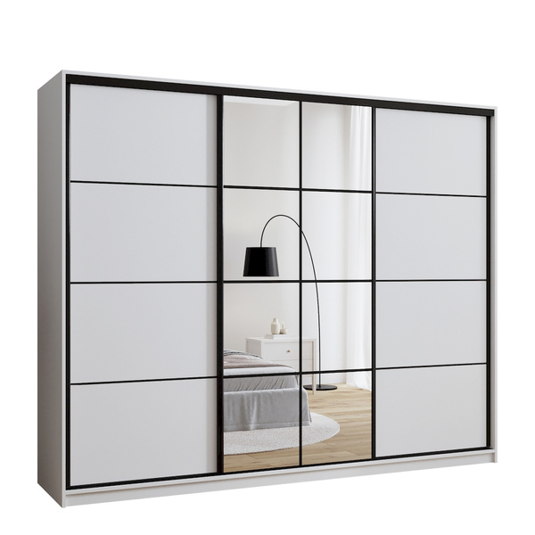 Solidne wykończenie krawędzi okleiną ABS chroni szafę przed codziennym zużyciem, a wysokiej jakości system przesuwny gwarantuje wygodne użytkowanie. To wybór, który łączy nowoczesny styl z niezawodną funkcjonalnością.