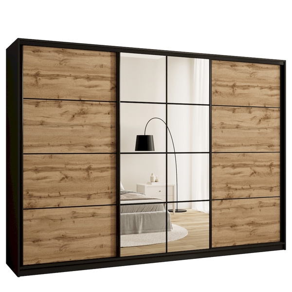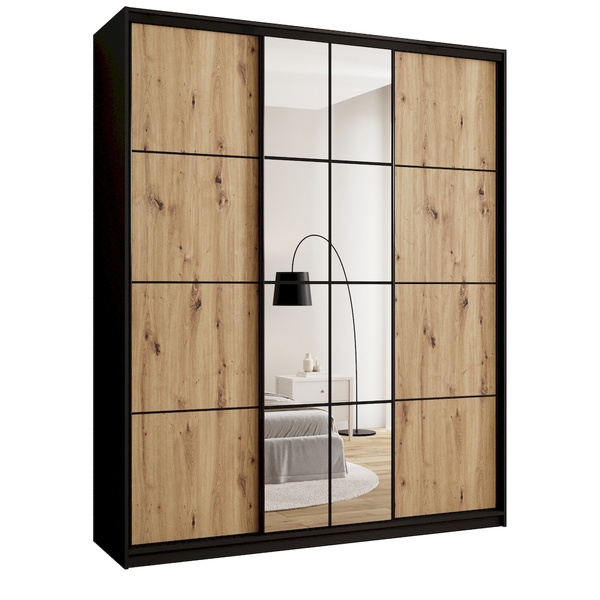 Opinie o Pojemna szafa przesuwna z lustrem 200 cm GOLD NEW dąb lefkas