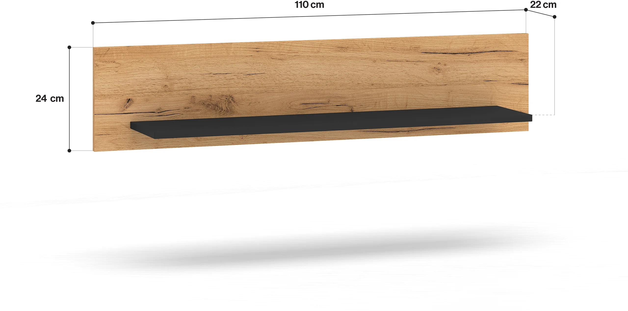 - Kolorystyka: Dąb Craft Złoty + czarna półka