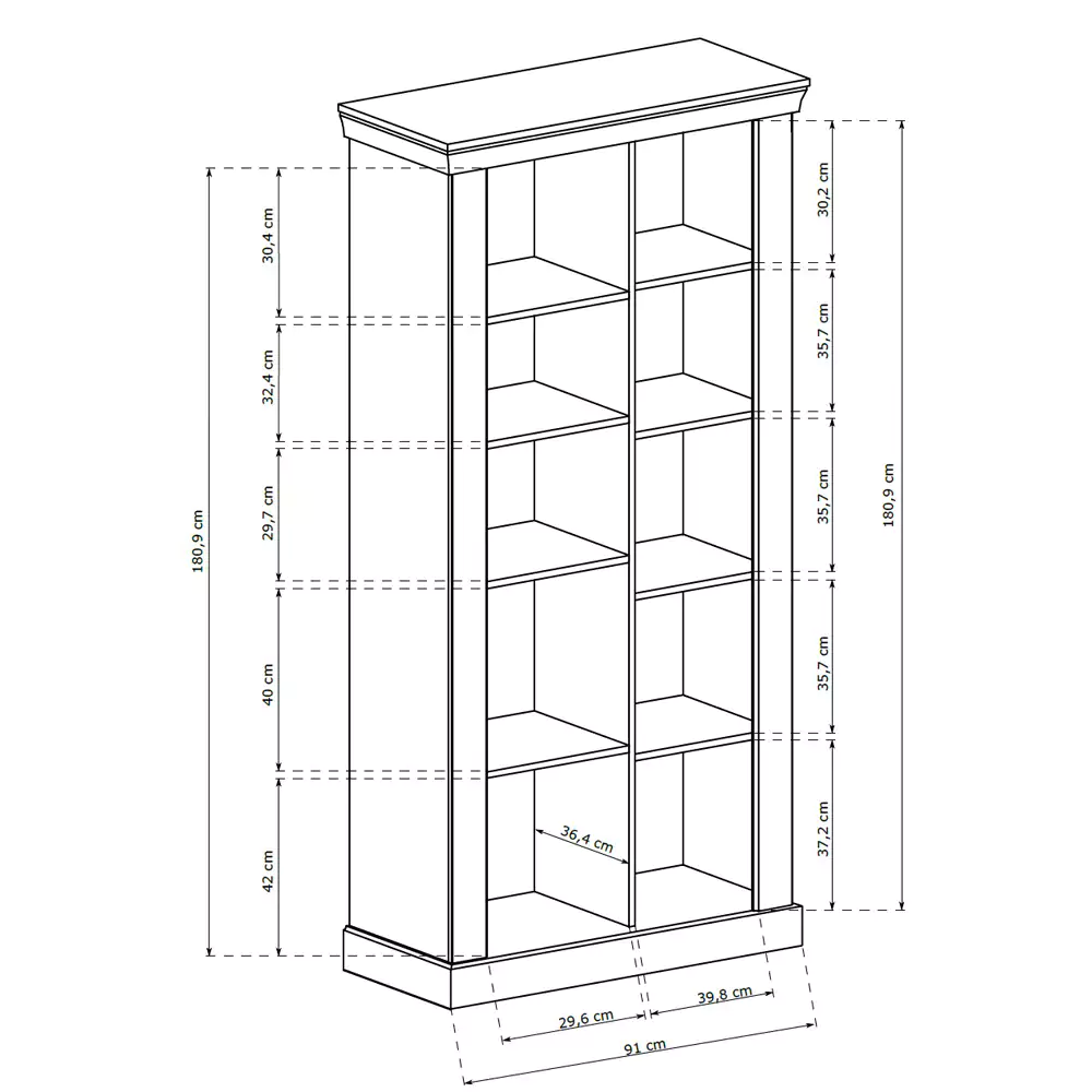 Regał ADRE został wykonany w eleganckiej stylistyce, dzięki której doskonale sprawdza się w klasycznych aranżacjach salonów. Regał posiada liczne półki znajdujące się za drzwiami, dzięki którym twoje akcesoria zyskają odrobinę prywatności. Dodatkowo wyposażenie regału w otwarte półki pozwoli ci umieścić na nich dekory oraz pamiątki, dzięki którym będziesz w stanie nadać pomieszczeniu swoich własnych oraz niepowtarzalnych akcentów.