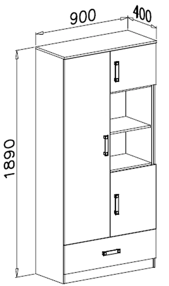 Regał z kolekcji młodzieżowych mebli systemowych OCON. Regał został wyposażony w pojemną szufladę na dole, oraz troje drzwi. Za lewymi drzwiami zagospodarowano cztery półki, a po prawej stronie trzy, z czego dwie otwarte, na których można umieścić dekory, pamiątki czy akcesoria.