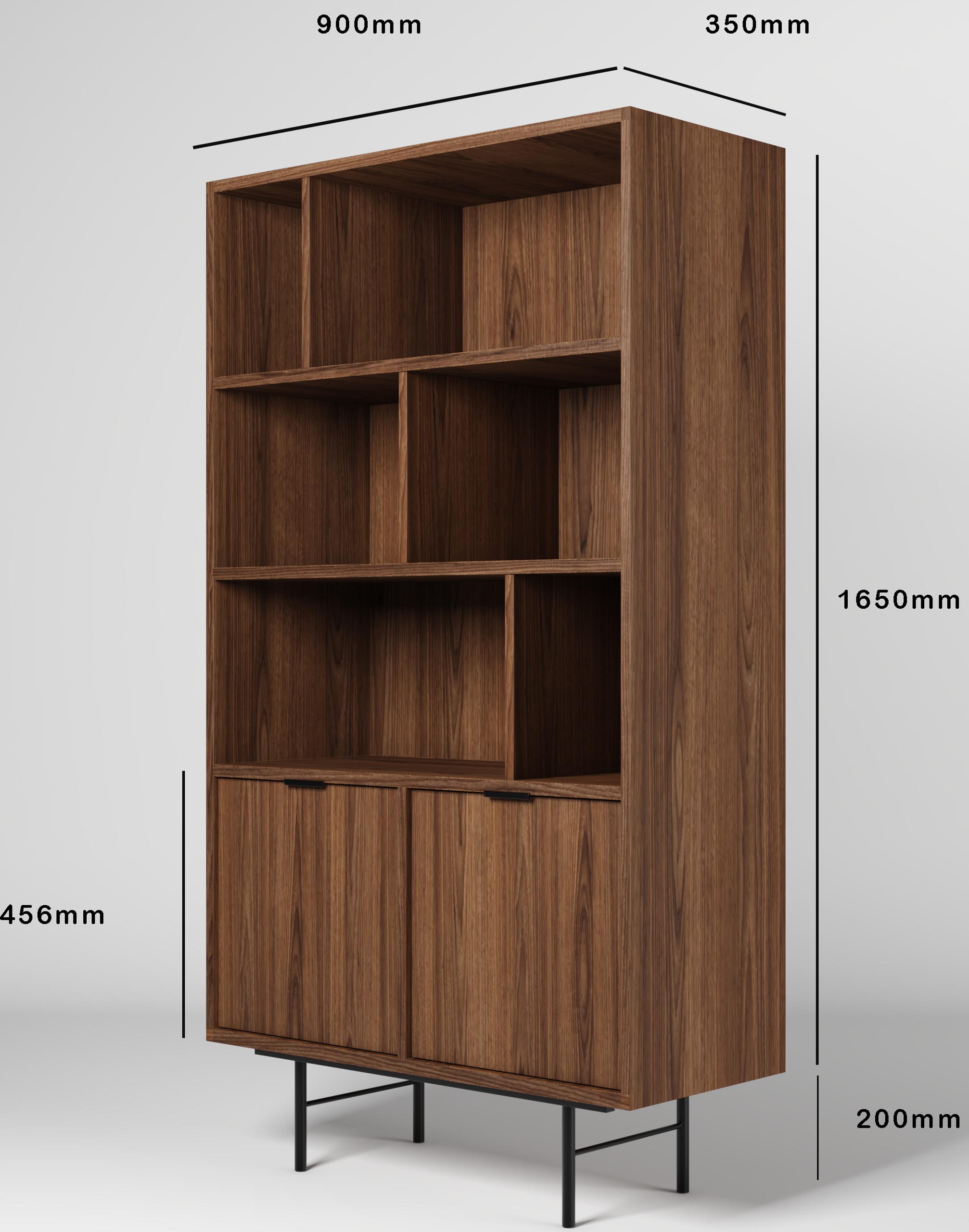 Regał ELVIO w kolorze orzech warmia to doskonałe połączenie nowoczesnej elegancji z funkcjonalnością. Dzięki otwartym półkom i zamykanej szafce z dwojgiem drzwi, regał sprawdzi się zarówno jako miejsce na książki, dekoracje, jak i praktyczne schowki. Jego lekka forma na czarnych, metalowych nogach idealnie komponuje się z innymi meblami z kolekcji ELVIO.