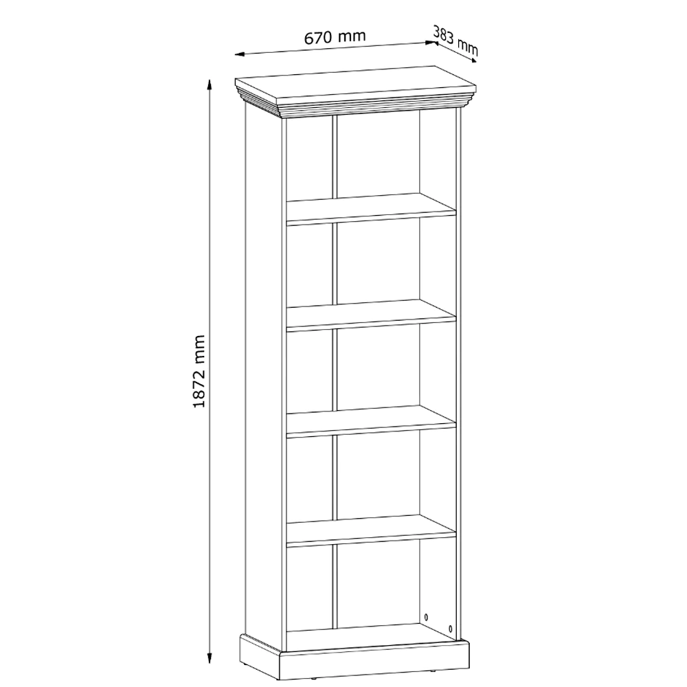Regał ROZANO to propozycja wykonana w prowansalskiej stylistyce, która nada twojemu pomieszczeniu eleganckich akcentów stylistycznych. Regał został wyposażony w cztery półki, które doskonale sprawdzą się do umieszczenia na nich książek oraz rozmaitych drobnych dekorów.