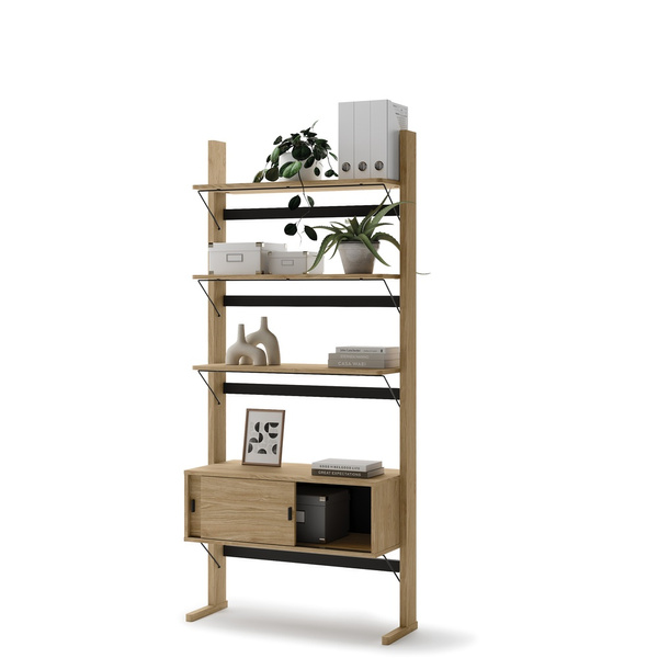 Model z kolekcji OLLIE to nowoczesny regał z biurkiem do pokoju młodzieżowego, który idealnie łączy funkcję przechowywania z przestrzenią do nauki. Dzięki minimalistycznej formie i stylowemu zestawieniu kolorystycznemu dąb olejowany/czarny, regał prezentuje się wyjątkowo lekko i nowocześnie, jednocześnie oferując stabilność oraz dużą powierzchnię roboczą.