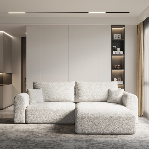 Jeśli szukasz narożnika do salonu, który łączy w sobie funkcję spania, pojemnik na pościel, wygodne poduszki i elegancką tkaninę boucle, nasza propozycja spełni wszystkie Twoje oczekiwania. Wybierz komfort, styl i praktyczność w jednym meblu, który odmieni Twój salon i sprawi, że codzienny wypoczynek będzie jeszcze przyjemniejszy.