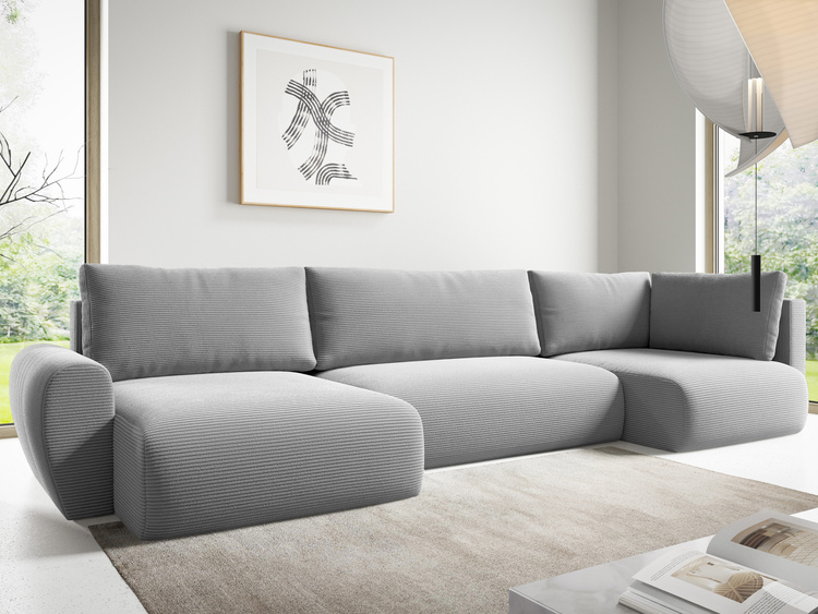 Nowoczesny narożnik z funkcją spania CAMILO DUO to idealne połączenie funkcjonalności i wyjątkowego designu, które wyróżnia się na tle innych mebli. Jest to mebel obity tkaniną boucle, co dodaje mu unikatowego  charakteru i tekstury. Idealnie komponuje się zarówno w nowoczesnych, jak i bardziej klasycznych wnętrzach, będąc centralnym punktem salonu.