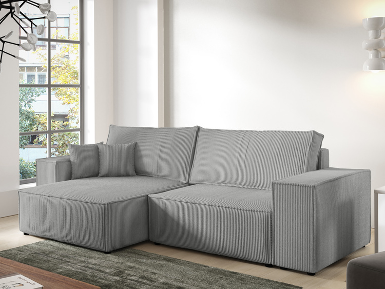 Rozkładana rogówka do salonu z funkcją spania szara PATI DUO