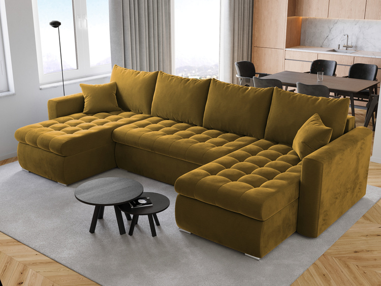 Sofę narożną można dostosować do lewo- lub prawostronnej konfiguracji, co umożliwia idealne dopasowanie do kształtu i wymiarów pomieszczenia. Uniwersalność i adaptacyjność w jednym.