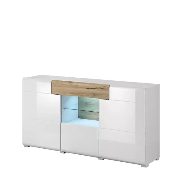 - Korpus został wykonany z płyty laminowanej o grubości 16 mm w wybarwieniu sosna andersen i dąb nash.