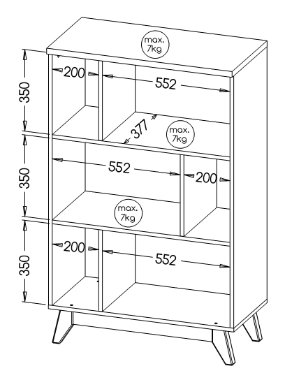 Regał wyróżnia się nie tylko wyjątkowym designem, ale i solidnością wykonania. Został stworzony z 16 mm płyty laminowanej, co gwarantuje jego trwałość i odporność na codzienne użytkowanie. Krawędzie mebla zabezpieczone są obrzeżem PCV, co zapewnia dodatkową ochronę i podnosi estetykę wykończenia. Dzięki otwartej konstrukcji regał świetnie sprawdzi się nie tylko jako miejsce do przechowywania, ale również jako element dekoracyjny, pozwalając eksponować ulubione przedmioty. To mebel, który łączy w sobie praktyczność z pięknem, stając się nieodzownym elementem każdego stylowego wnętrza.