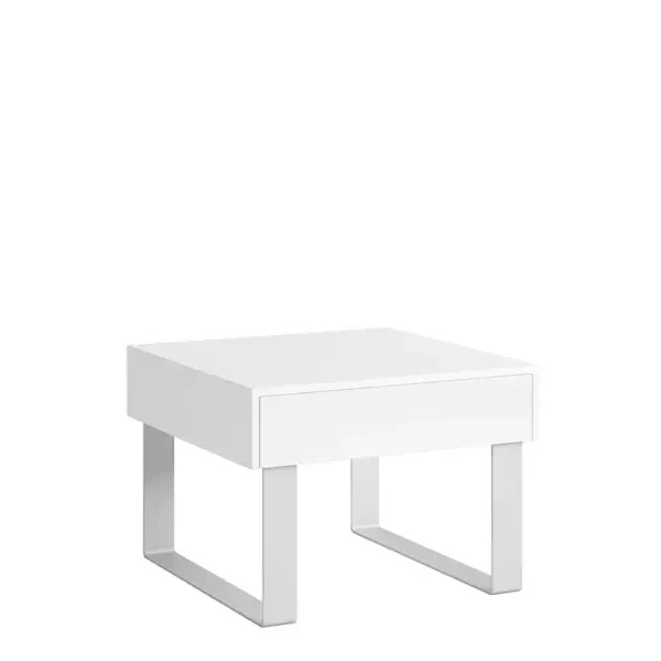 Okrągły stolik kawowy z kolekcji ETA ma blat w kolorze dąb artisan, wykonany z wysokiej jakości płyty laminowanej grubości 32 mm. Ława do salonu osadzona jest na czarnych metalowych nogach wykonanych z profilu o grubości 20 mm. Stolik jest lekki, więc bez problemu go przestawisz, dzięki czemu świetnie sprawdzi się w małym mieszkaniu. Stelaż delikatnie nachodzi na blat co prezentuje się ciekawie i nowocześnie.