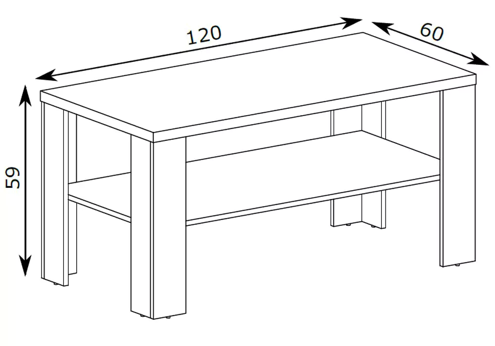 Stolik kawowy ADRE posiada blat o powierzchni 120 x 60 cm, na którym z powodzeniem umieścić swoją herbatę oraz ulubione wypieki. Dodatkowo stolik posiada półkę u dołu, która doskonale sprawdza się do umiejscowienia czasopisma lub pilota od telewizora.
