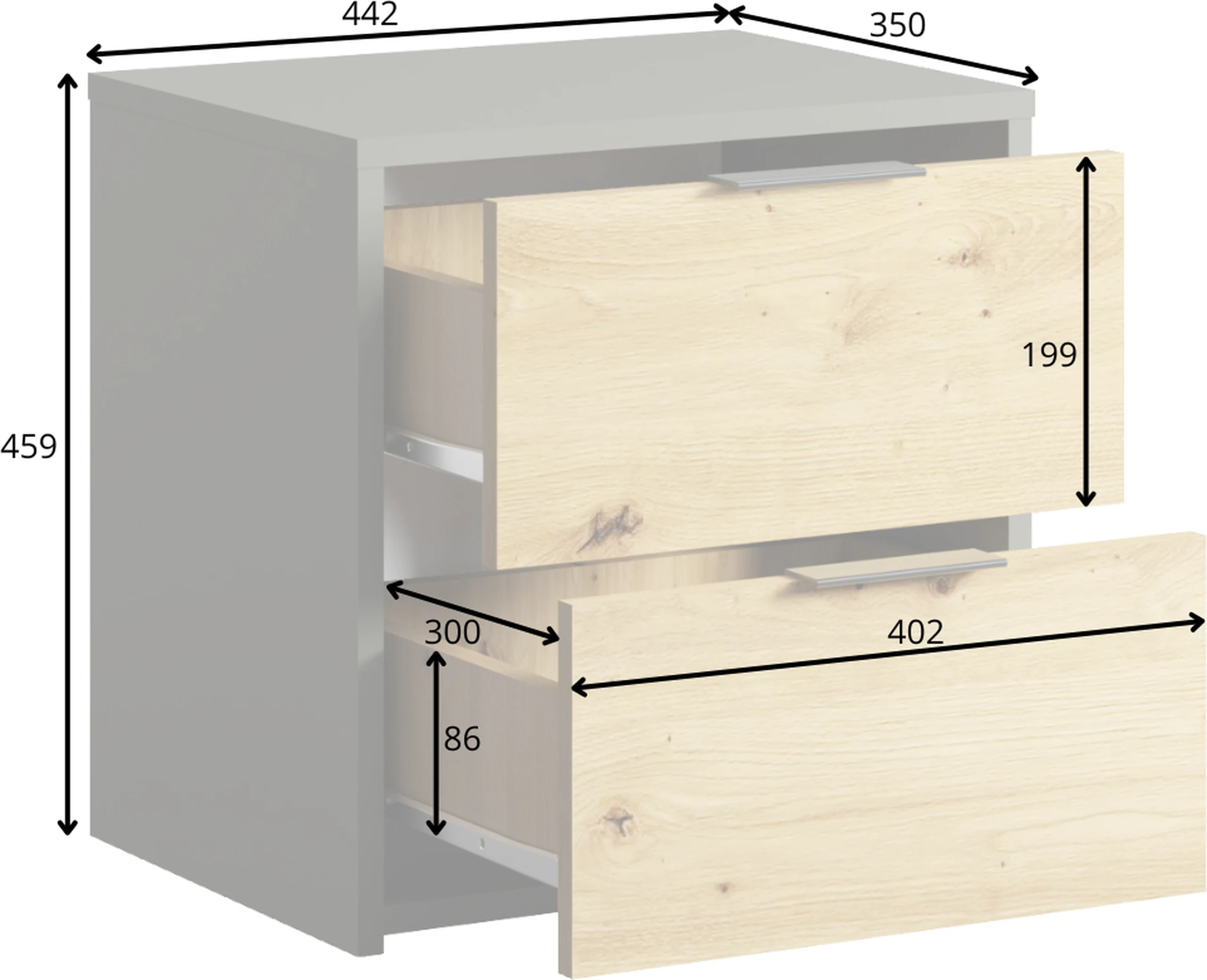 - Liczba szuflad: 2 sztuki na prowadnicach rolkowych