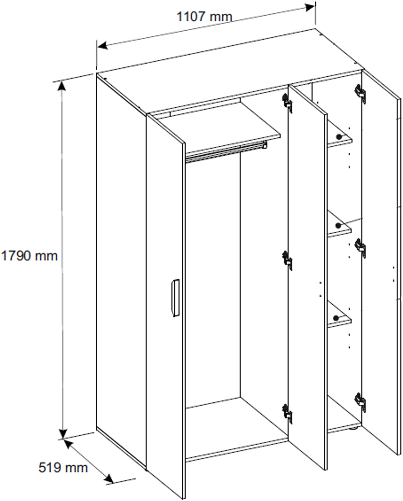 • Trzydrzwiowa konstrukcja – wygodny dostęp do całej zawartości szafy