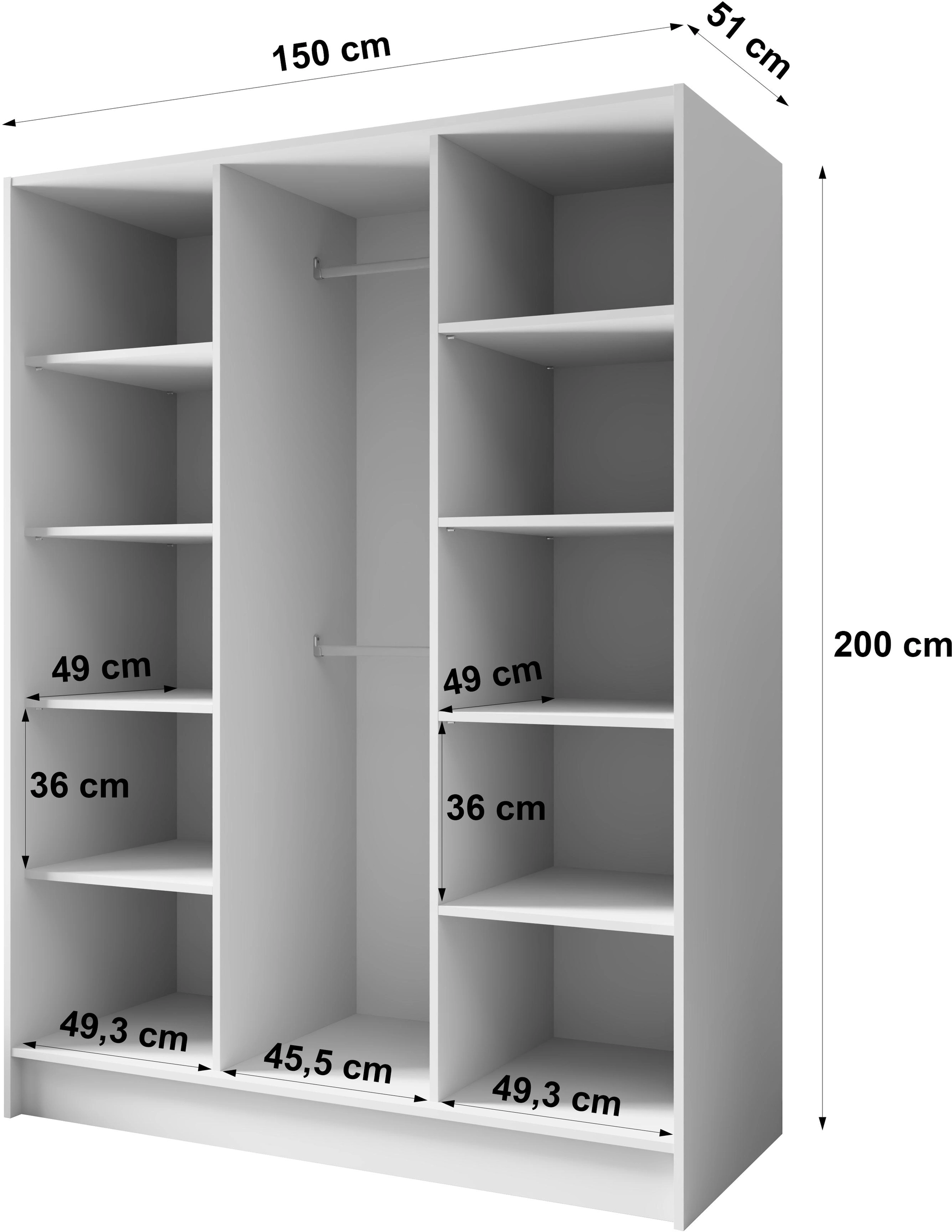 - Trzy warianty układu wnętrza – dopasuj szafę do swoich potrzeb: półki, drążek lub ich kombinacja