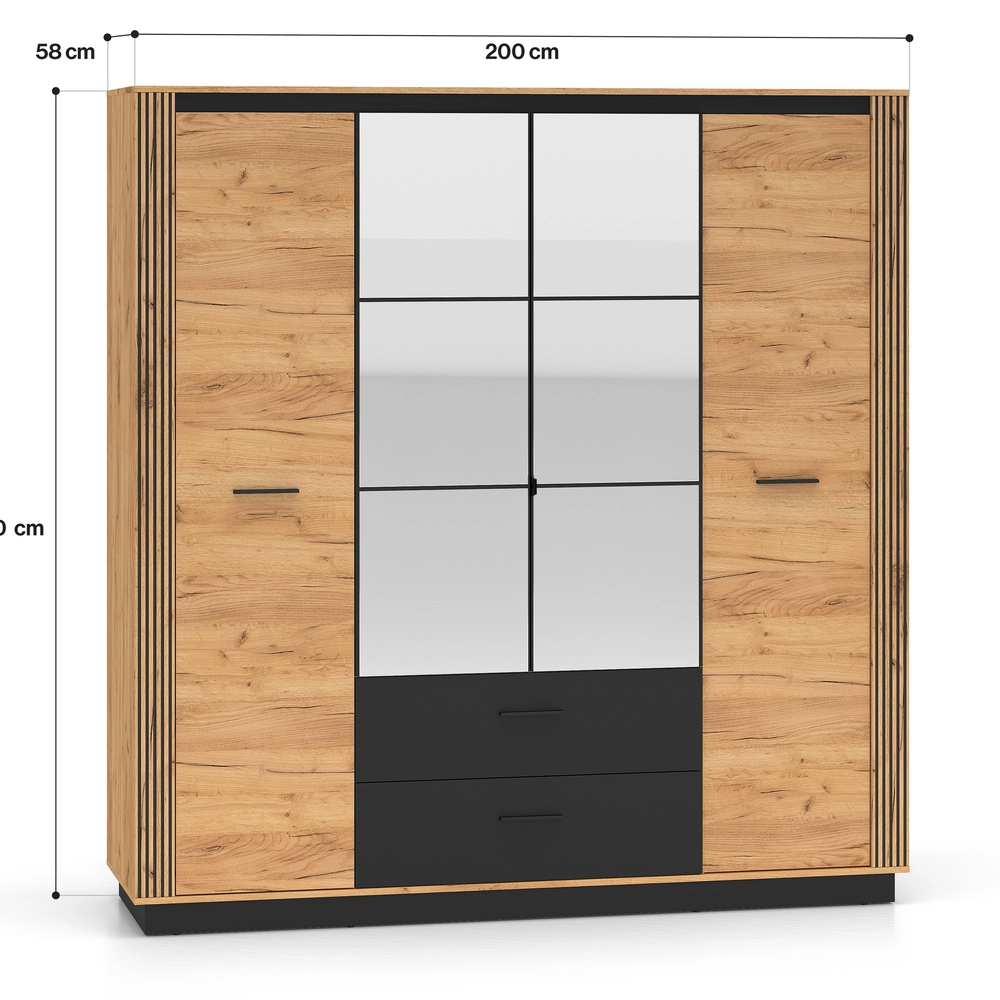Szafa czterodrzwiowa z lustrem DĄB CRAFT ZŁOTY + CZARNY – styl, który porządkuje przestrzeń
