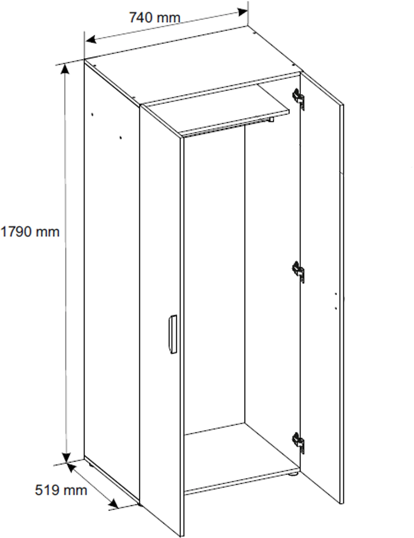 - Wymiary: wys. 179,0 cm / szer. 74,0 cm / gł. 51,9 cm