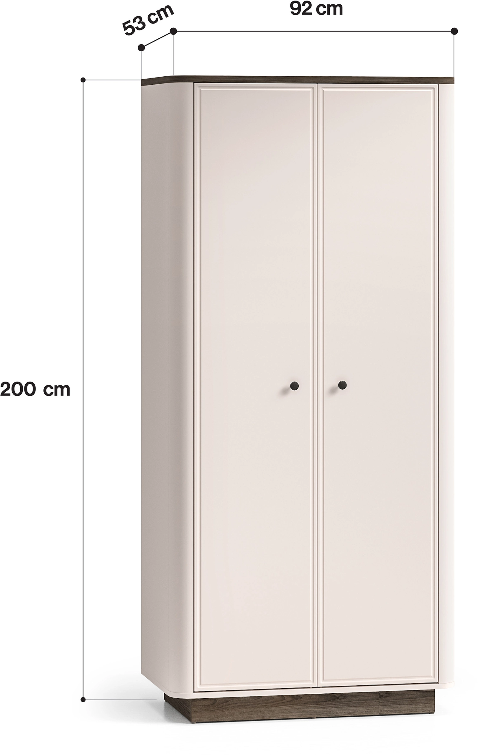 Szafa VILANO to połączenie funkcjonalności i wyjątkowego designu, które odmieni każdą sypialnię lub garderobę. Jej subtelna kolorystyka – kaszmir zestawiony z blatem w odcieniu dąb windmill dark – wprowadza do wnętrza spokój i elegancję. Zaokrąglone boki i frezowane fronty MDF dodają meblowi charakteru, a pojemne wnętrze zapewnia wygodne przechowywanie ubrań przez cały rok.
