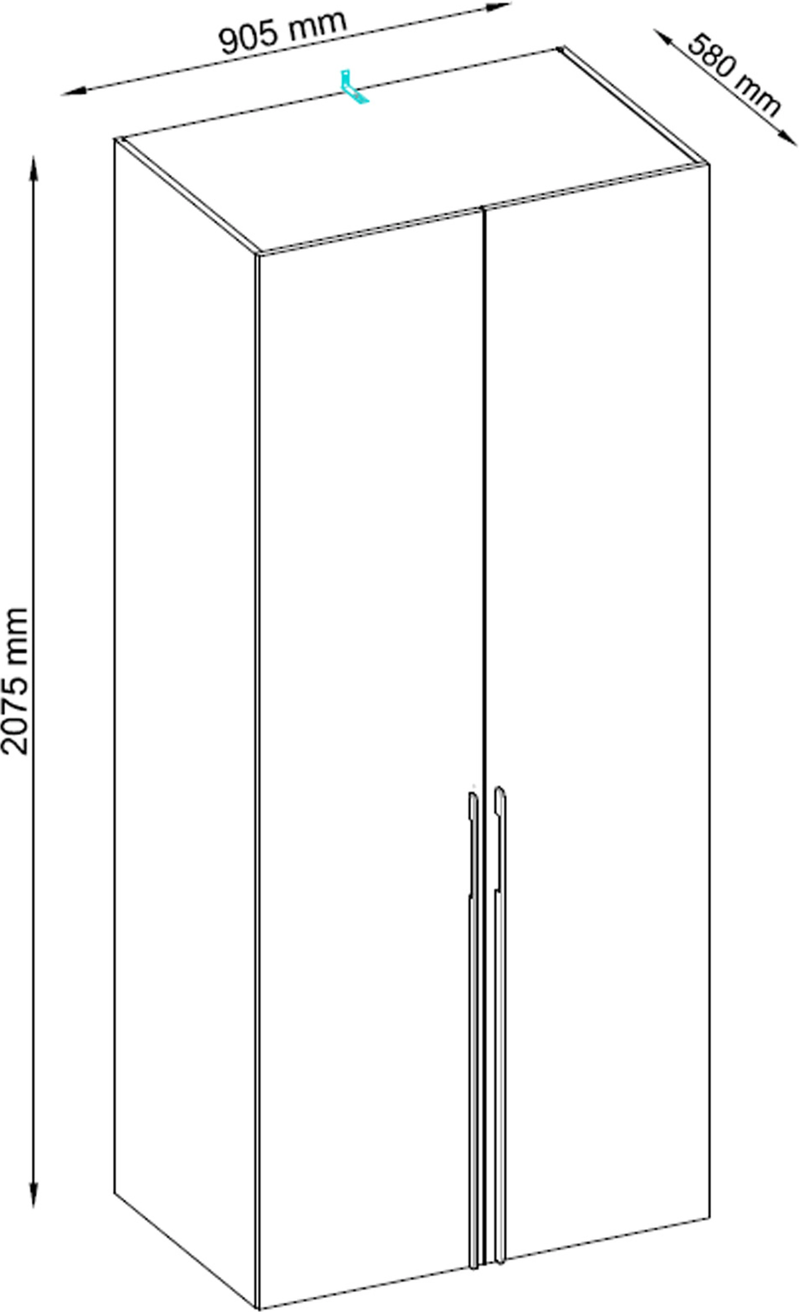 - Wymiary: szerokość 90,4 cm, wysokość 206,9 cm, głębokość 60,1 cm