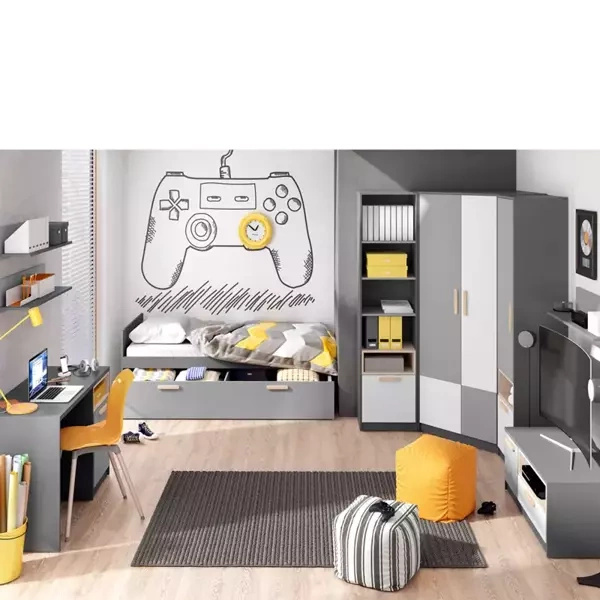 - Korpus wykonano z płyty laminowanej o grubości 16 mm. Płyta laminowana charakteryzuje się odpornością na zarysowania oraz łatwością w czyszczeniu.