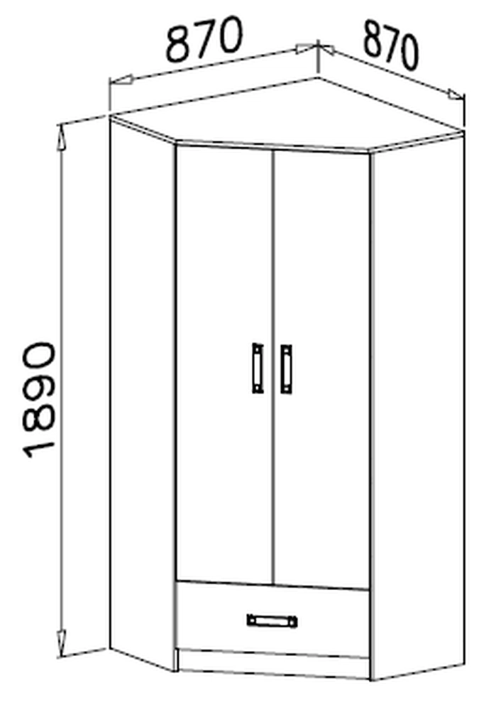 Szafa narożna z kolekcji mebli systemowych OCON. Szafa została wyposażona w szufladę oraz parę drzwi, za którymi znajdują się trzy półki ułożone jedna nad drugą oraz duża przestrzeń z drążkiem gdzie umieścisz swoje wieszaki. Dodatkowo szafę można skonfigurować w trzy wersje kolorystyczne uchwytów i dodatków, dzięki czemu dopasuje się do każdej aranżacji pomieszczenia.