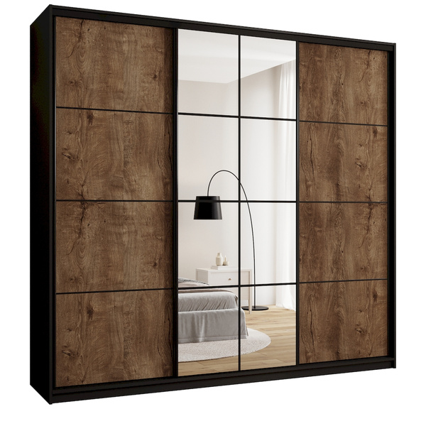 Szafa przesuwna z kolekcji mebli systemowych OCON. Szafa została wyposażona w cztery bardzo pojemne półki, trzy za drzwiami po lewej stronie, oraz jedną po prawej stronie. Pod półką za prawymi drzwiami miejsce znalazł drążek na wieszaki. Szafa dzięki swojej prostocie jak i trzem wariantom kolorystycznym przypada do gustu zarówno młodzieży jak i rodzicom.