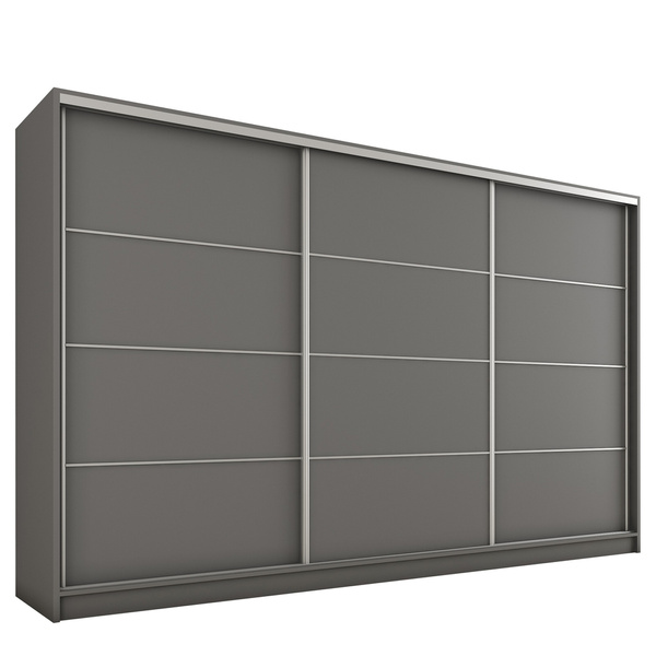 Drzwi szafy poruszają się na solidnym, aluminiowym systemie przesuwnym, który dodatkowo usztywnia konstrukcję.