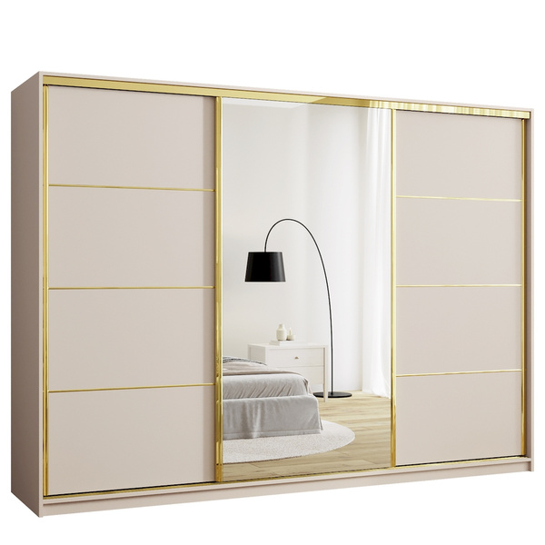 Nasza szafa z lustrem 200 cm wyróżnia się nowoczesnym wyglądem dzięki trzem drzwiom na stalowym systemie przesuwnym w eleganckim, czarnym kolorze. Czarne stalowe uchwyty dodają meblowi wyjątkowego charakteru, a jednocześnie zapewniają solidność i długowieczność użytkowania. System przesuwny umożliwia łatwe otwieranie i zamykanie drzwi bez potrzeby zajmowania dodatkowej przestrzeni.