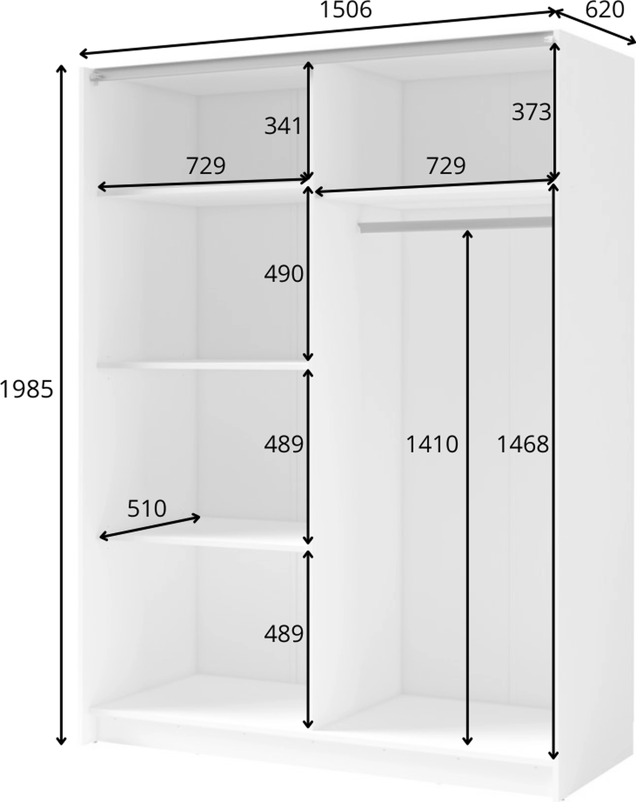 - Wymiary: 150 x 198,5 x 62 cm (szer. x wys. x gł.)