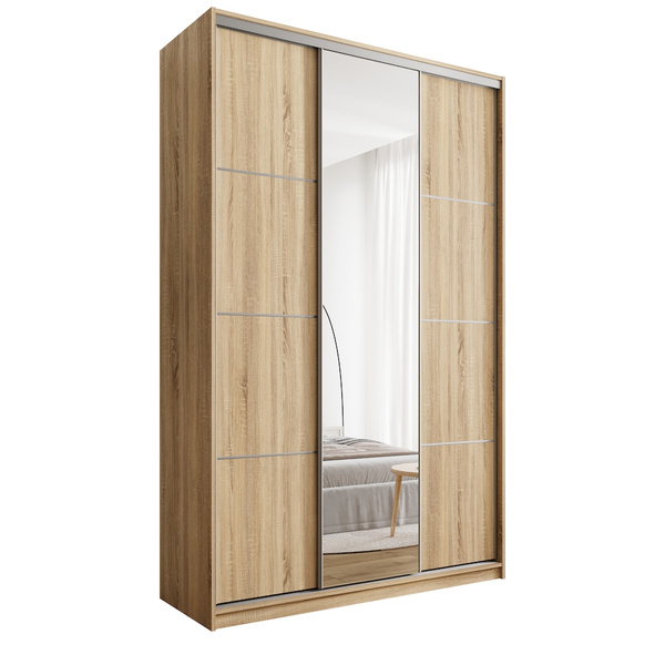 Szafa przesuwnaLOFT180 cm to doskonały wybór dla miłośników nowoczesnego designu i praktycznych rozwiązań. Jej unikalne lamelowe fronty wprowadzają industrialny charakter, który świetnie wpisuje się w styl loftowy, dodając wnętrzu wyrazistości i elegancji. Szerokość 180 cm czyni ją idealnym rozwiązaniem zarówno do przestronnych sypialni, jak i mniejszych pomieszczeń.