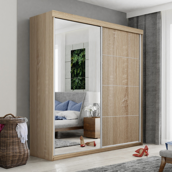 Szafa przesuwna z lustrem 150 cm ARTI z półkami i drążkiem