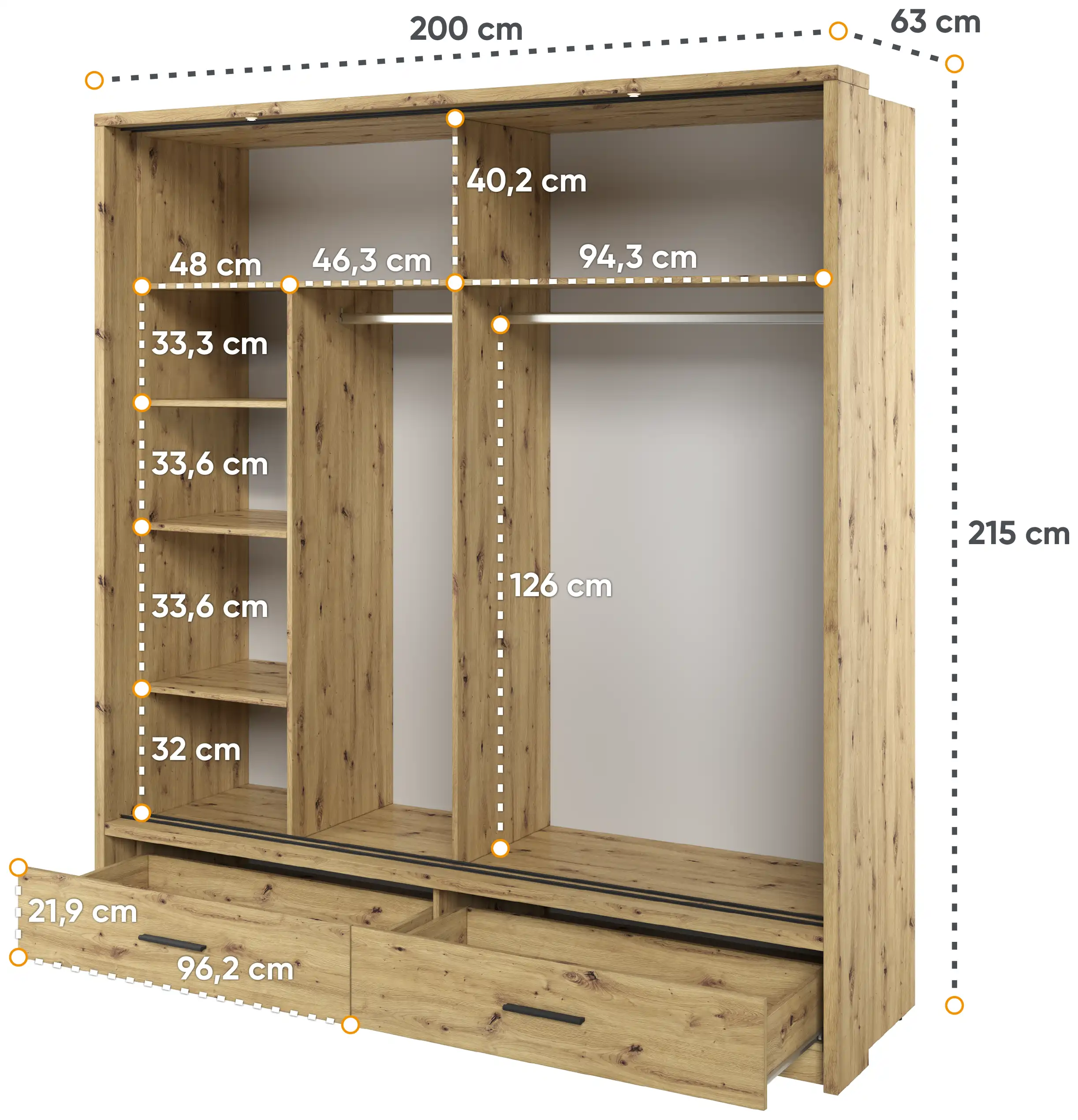 Szafa przesuwna z lustrem 200 cm do sypialni ARTI