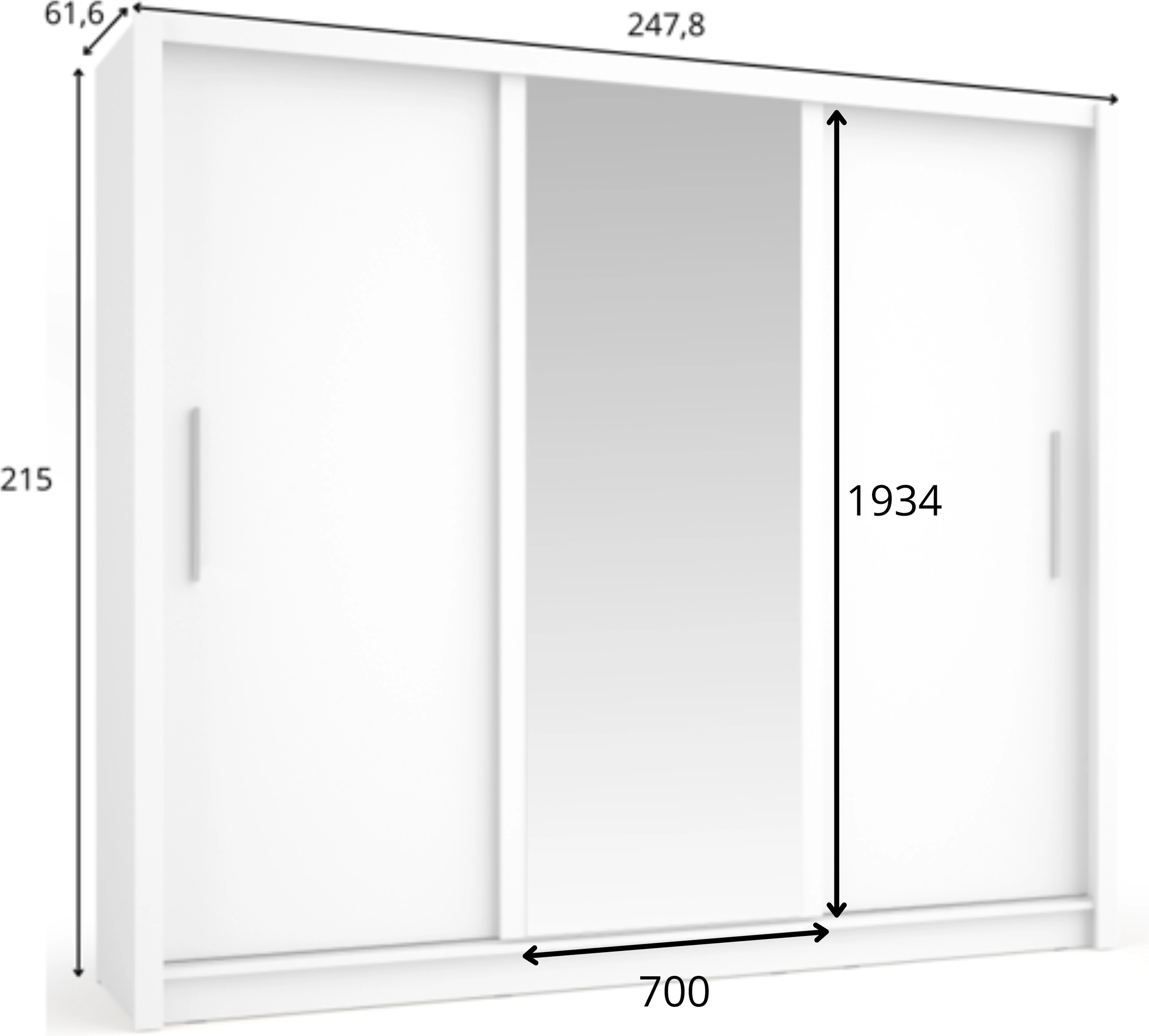 - Wymiary: szerokość 247,8 cm, wysokość 215 cm, głębokość 62 cm