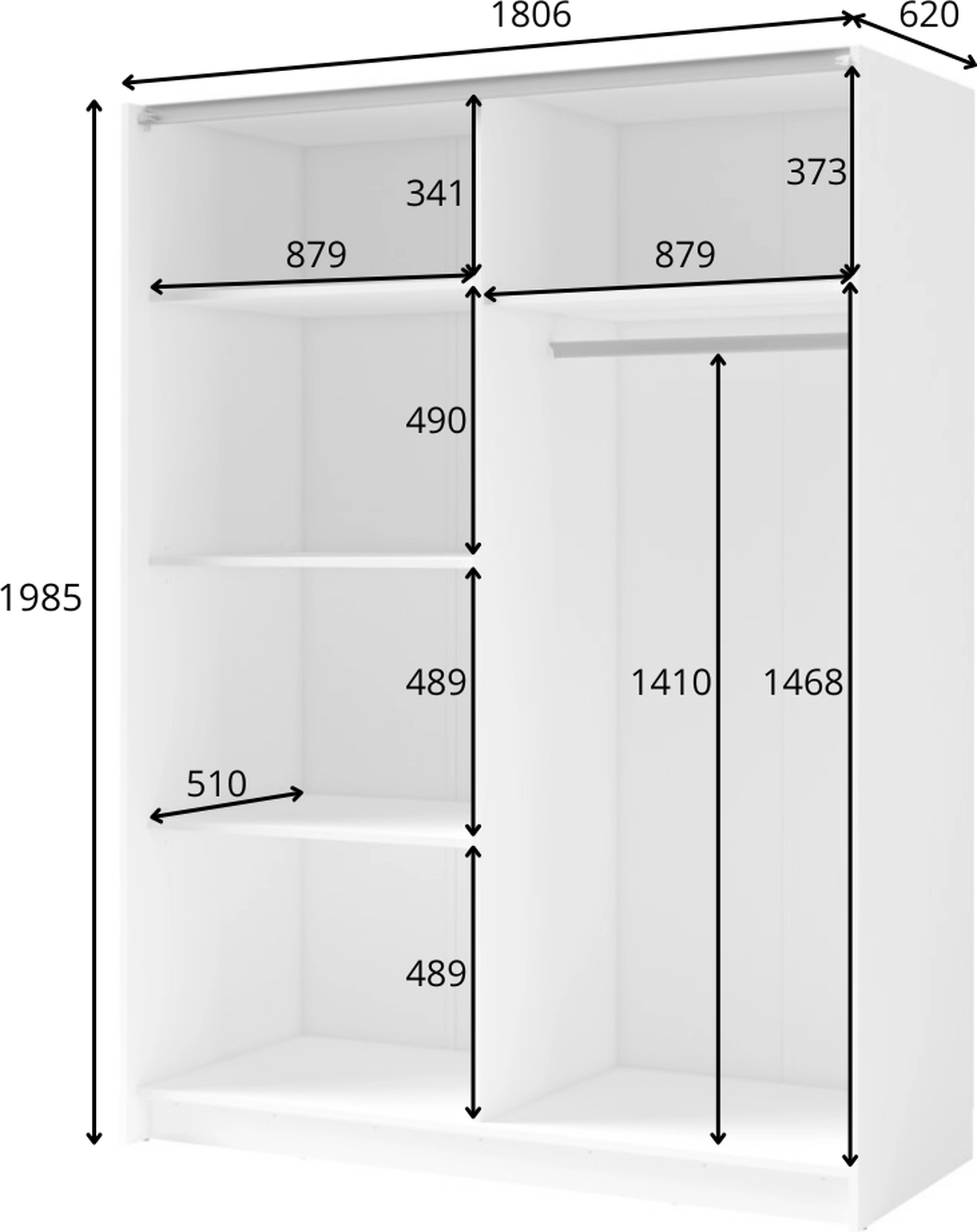 - Wymiary: 180 x 198,5 x 62 cm (szer. x wys. x gł.)