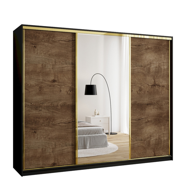 Zyskaj idealnie zorganizowaną przestrzeń dzięki szafie przesuwnej o szerokości 200 cm. Przemyślany układ wnętrza, liczne półki i dwa drążki na wieszaki pozwolą Ci łatwo uporządkować garderobę. Dodatkowe lustro na lewym froncie nie tylko ułatwia codzienne przygotowania, ale także optycznie powiększa wnętrze, nadając mu lekkości i elegancji.